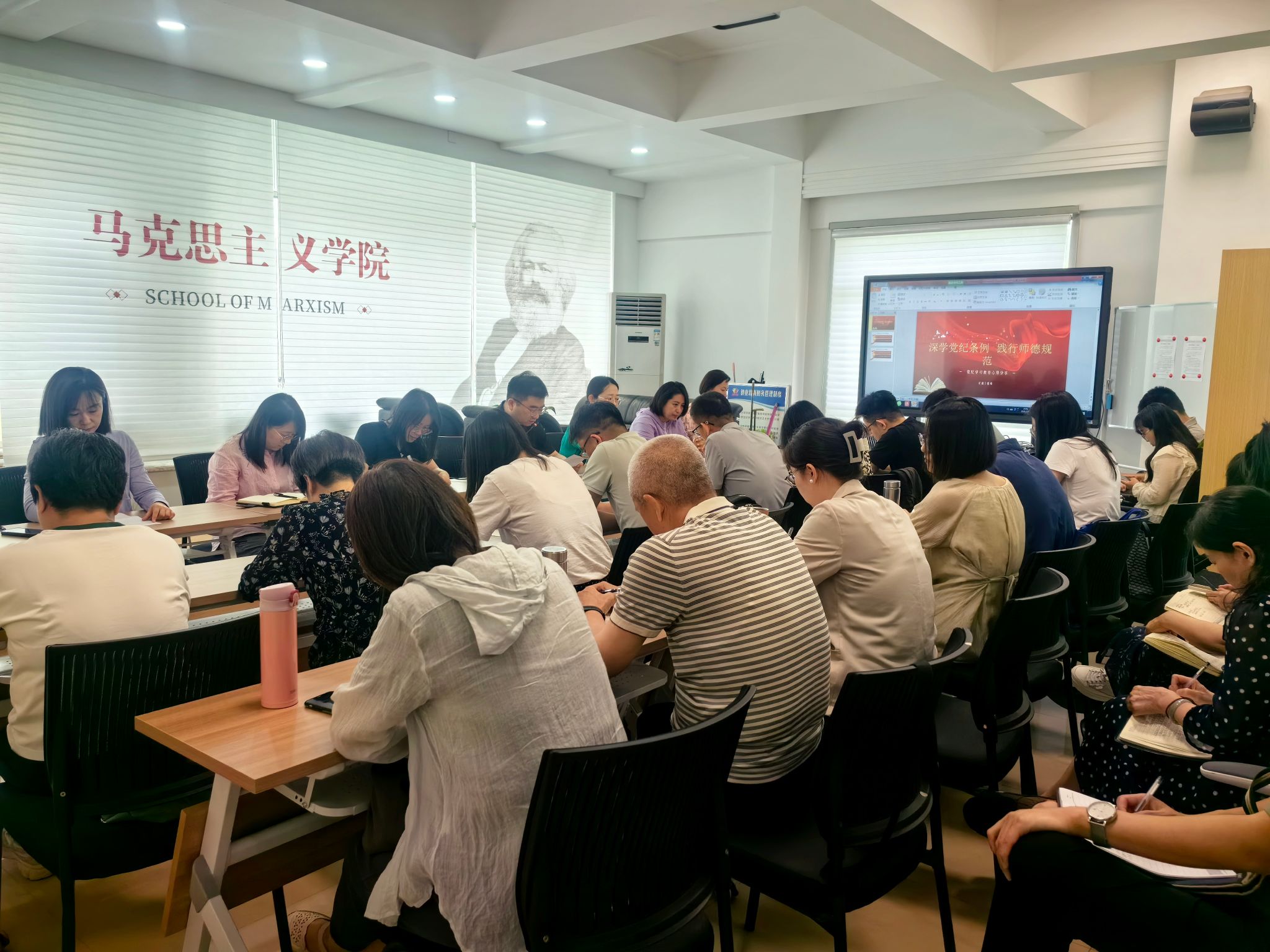 为全面贯彻落实习近平总书记关于教育的重要论述,特别是近期对学校思政课建设作出的重要指示,5月28日下午,马克思主义学院党支部与财税学院党支部联合开展“学党纪、知敬畏、铸师魂、践初心”为主题的党日活动,希望通过活动的开展,强化两院教师对师德师风的重视,真正把立德树人要求体现在一言一行一举一动中。马克思主义学院、财税学院全体教师参加了活动。