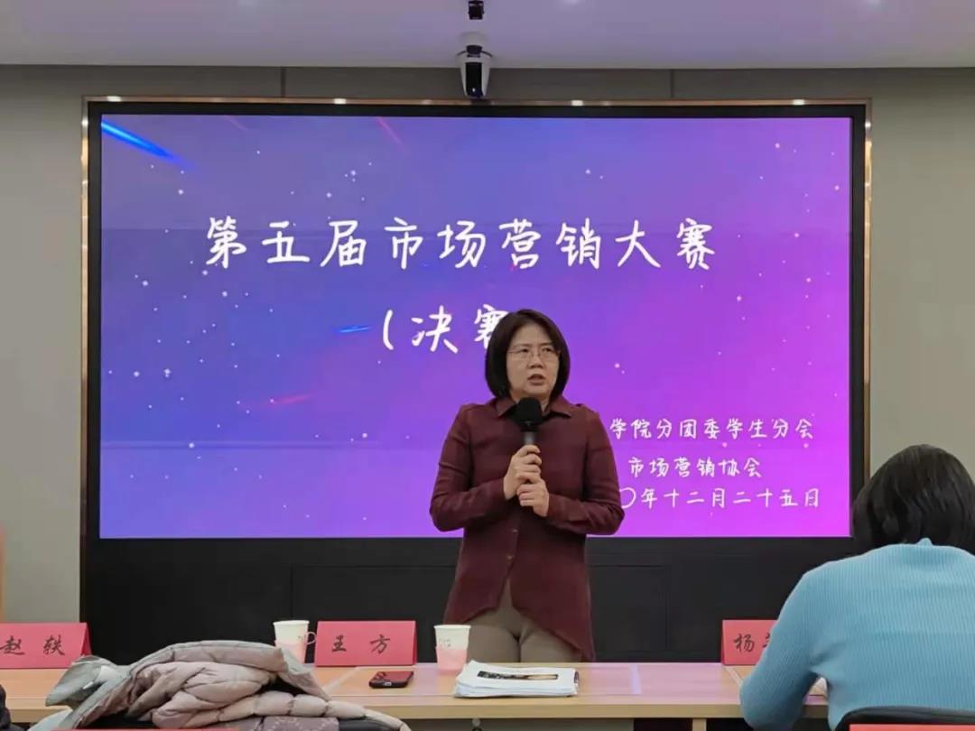 12月25日晚,商学院第五届市场营销技能竞赛决赛在1号教学楼103教室隆重举行。党总支书记毛军旗、副书记孙志芳、办公室主任谢斌、分团委书记李燕应邀出席本次竞赛,学院院长王方、副院长赵轶、杨莉娟,市场营销教研室主任全盼、汽车营销教研室主任韩建东及商务英语教研室主任李婷担任此次竞赛评委。