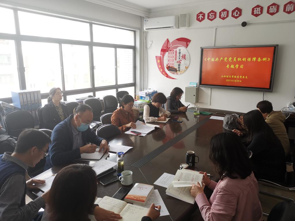 3月30日下午,我院在225会议室开展了《中国共产党党员权利保障条例》学习活动。教师党支部全体党员及学生党支部教工党员一起参加了学习。