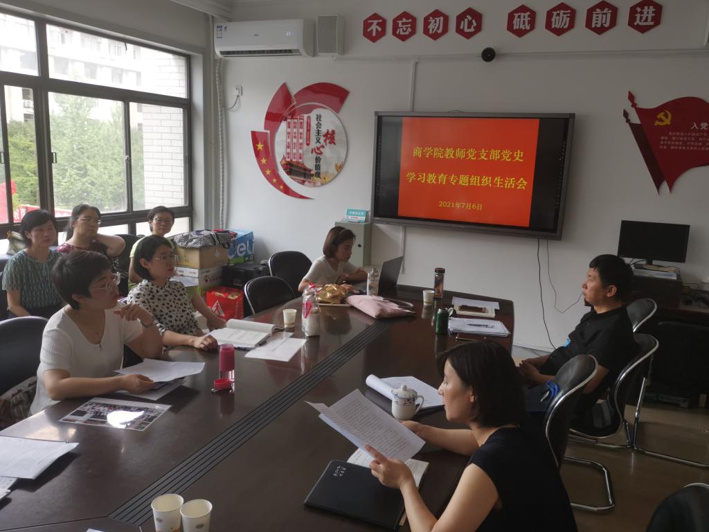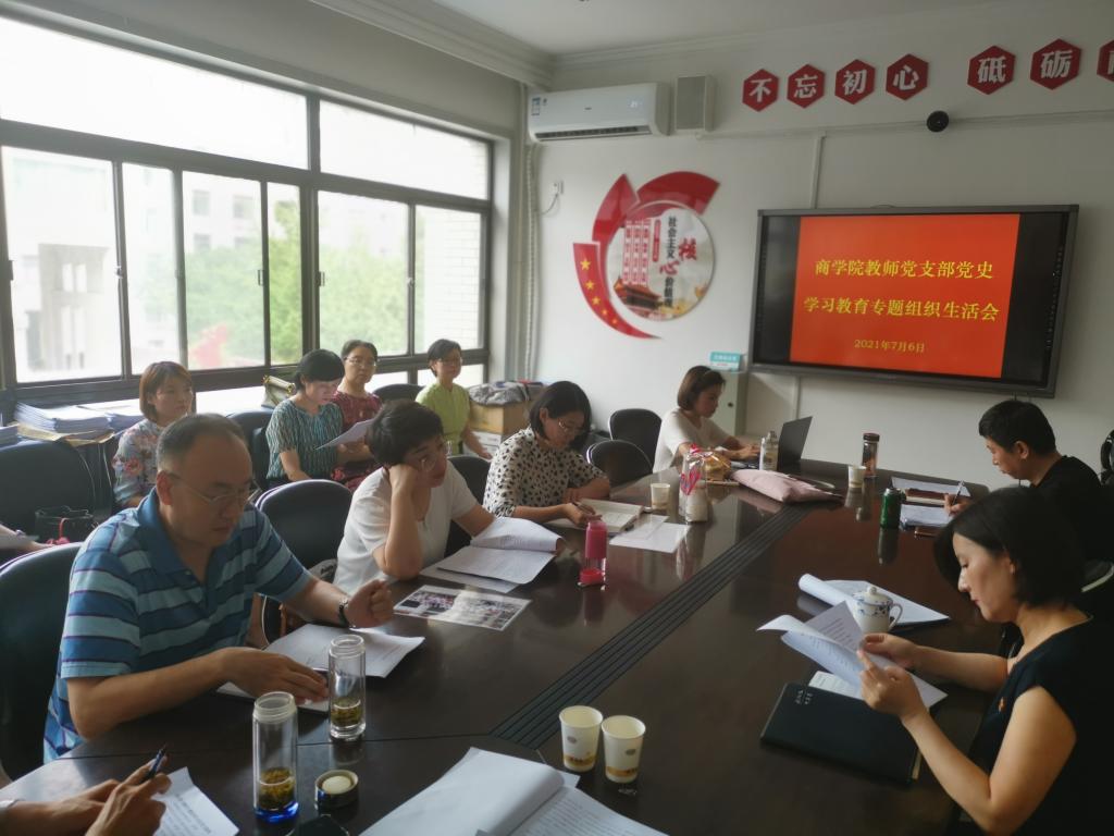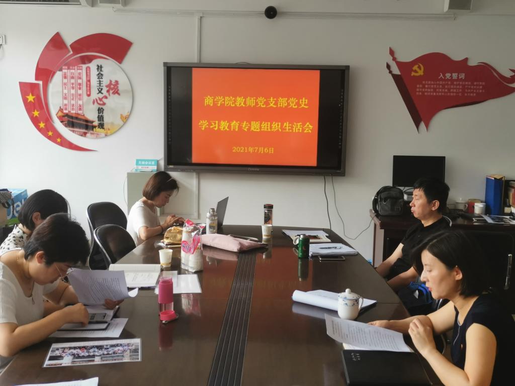 为总结党史学习教育以来阶段性成果,交流学习体会,查找问题不足,进一步落实“学史明理、学史增信、学史崇德、学史力行”要求,引导广大党员增强“四个意识”,坚定“四个自信”,做到“两个维护”。商学院教师党支部于2021年7月6日组织全体教师党员在225会议室召开了“学党史、悟思想、办实事、开新局”党史学习教育专题组织生活会。