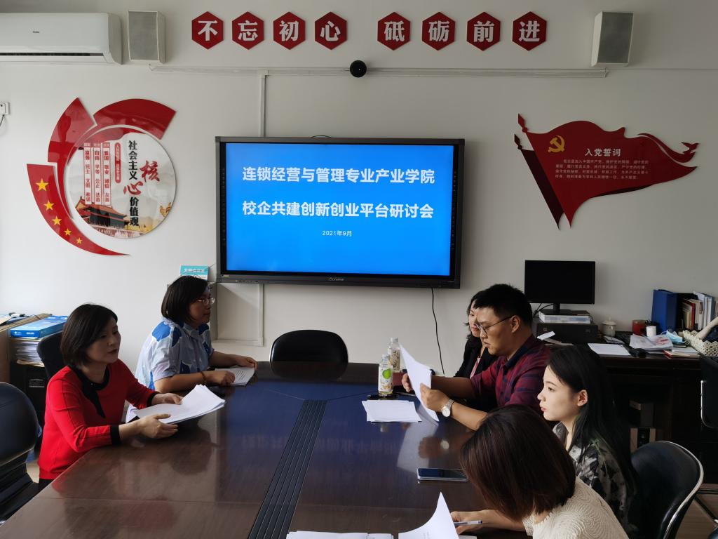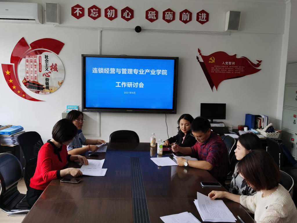 9月27日下午,连锁经营与管理专业在办公楼225会议室召开产业学院建设推进会。商学院副院长杨莉娟、连锁经营管理教研室主任梁彩花、山西迈盛悦合体育用品有限公司总经理助理郭海平、山西永辉超市店总经理史玮和HRBP任杰出席了本次会议。会上,杨莉娟对产业学院建设任务与2021——2022学年年度计划安排进行了说明,梁彩花对产业学院建设情况做了汇报。随后,校企双方分别就产业学院建设情况进行了分析,并就人才培养模式,校企共建课程体系,校企共建师资团队,校企共办职业技能大赛等八项模块任务进行了探讨。