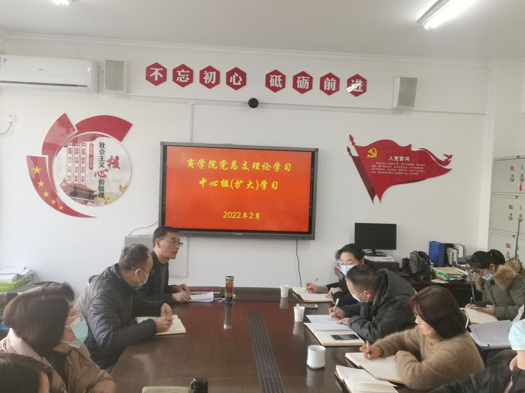 2月22日下午,商学院在225会议室召开党总支理论学习中心组(扩大)学习会。学校党委组织部部长陶莹、人事部副部长刘科伟列席旁听了会议,学院党总支班子成员及全体教工参加了会议。会议由党总支书记毛军旗主持。