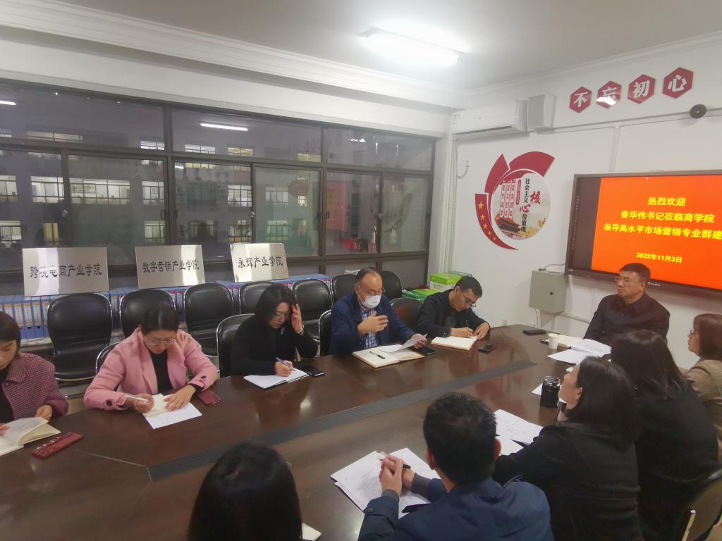 2022年11月3日下午,校党委书记秦华伟莅临商学院,对学院高水平市场营销专业群建设工作进行调研指导。商学院班子成员、各专业负责人和教研室主任参加了座谈会。
