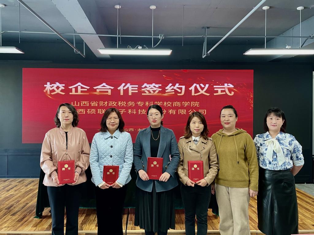 签约仪式上,王方院长详细介绍了bat365高水平学校建设及市场营销高水平专业群建设情况,翟青总监翟青对山西鹏华众创空间做了详细介绍,双方均对未来的合作充满了信心及期待。此次战略合作,主要是为了发挥校企双方的优势,促进教育链、人才链与产业链、创新链的有机衔接,共同培养符合社会需求的高素质技术技能人才,双方将秉持优势互补、合作共赢的原则,共同推进校企合作的深耕发展。同时商学院还与山西硕联电子科技股份有限公司签署了战略合作书,共同探讨数字人才的培养之路。签约完成之后,王方院长为三名校企合作兼职教师颁发了聘书,鹏华众创空间向商学院六名教师颁发了“创新创业指导专家”聘书。