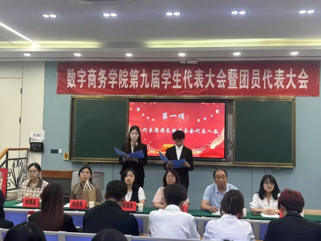星辰焕新貌,五月漾风华。5月28日,数字商务学院第九次团员代表大会暨学生代表大会在2号楼J105教室隆重召开。数字商务学院党总支书记王方老师,党总支副书记谢斌老师,分团委书记郝强燕老师,第八届分团委书记李燕老师,分团委副书记杨贵雅老师,青年教师代表韩墨遥老师及139位团员学生代表出席本次大会。