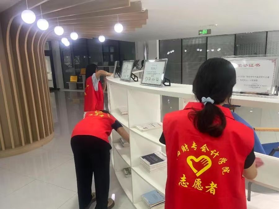 本活动分批次于端午前两周推进,各学院选派8名同学参与。每周二下午,同学们自带清洁工具集结劳动。现场分工明确:有人擦拭荣誉展柜,有人清扫会议室地面,有人整理桌椅杂物。大家动作干练、配合默契。