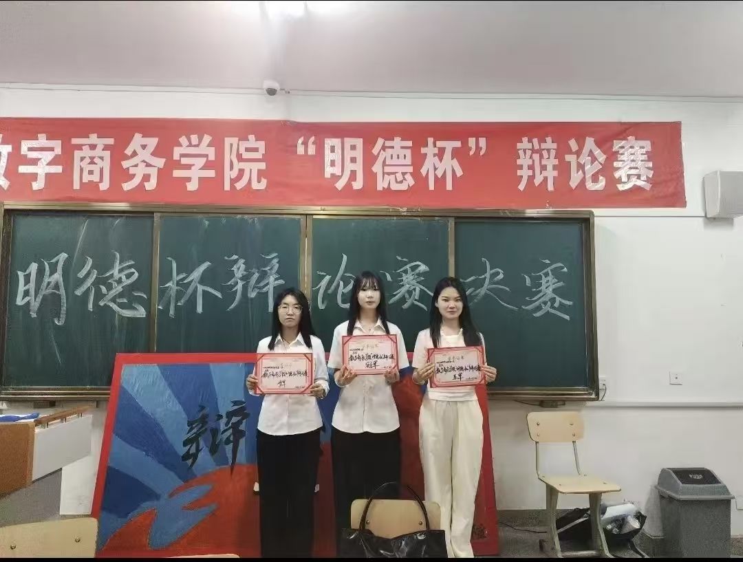 为全面提升学生思维素养,培养逻辑推理、批判性思考与创新能力,6月11日至15日,数字商务学院成功举办了“明德杯”辩论赛。赛事期间,参赛选手们围绕自己的辩题展开了激烈交锋,以敏锐的思维和精彩的辩论,展现出扎实的思辨功底与青春风采。