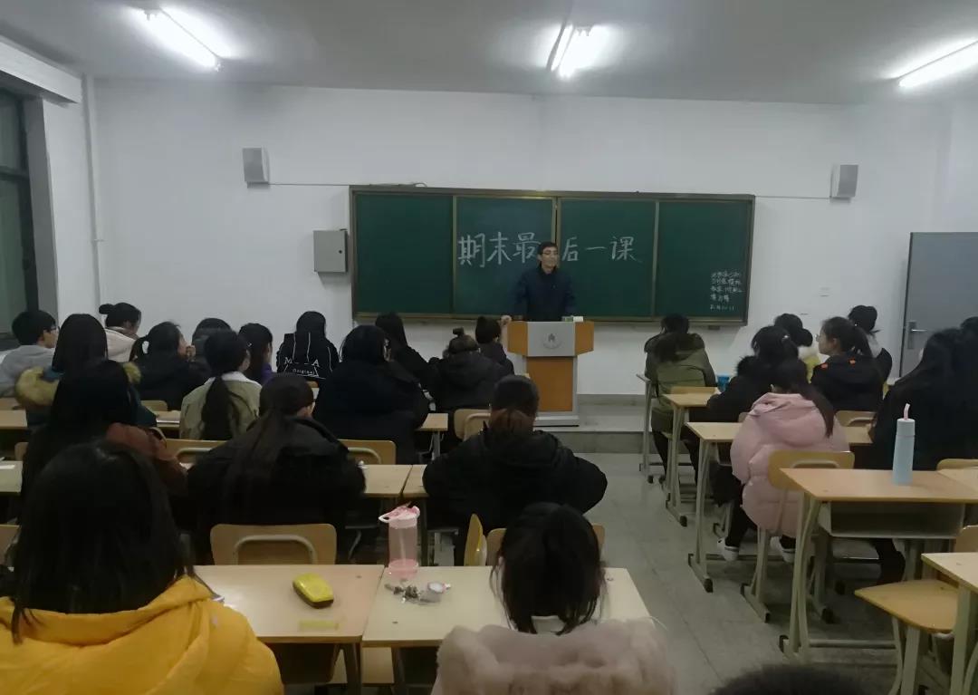 各班还通过“最后一课”向学生宣讲了学院下一学期的学风建设计划和学院管理措施,引导同学们在下学期自觉遵守学校有关规定,自警自律、自励自强,同学院一起同向而行、努力奔跑,逐梦未来,争取在课堂出勤、宿舍卫生、顶岗实习、社团活动等方面取得更大的成绩。