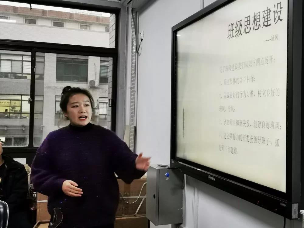 本次先进班集体评选,共有6个班级自愿申报。各班班长通过PPT方式向大家展示了班级的成长历程。其中,2017级连锁经营管理班班长魏世毓重点展示了建班以来同学们付出的努力及获得的各项荣誉;2017级市场营销二班副班长杨蕴睿重点诠释了优秀的班委团队对班级建设的重要性;2018级市场营销一班班长姚杰呈重点阐述了班级凝聚力是做好班级工作的关键;2018级市场营销二班班长高旭光重点述说了追求德智体美劳全面发展是班级每个成员的神圣职责;2018级商务英语班班长任婷婷以流利的英语演讲开头,重点介绍了班级的奋进历程;2018级连锁经营管理班班长孙霜婷以最精美的PPT和最精炼的语言,将班级成长的点滴汇聚成一派和谐融洽、相亲相爱的班级景象。