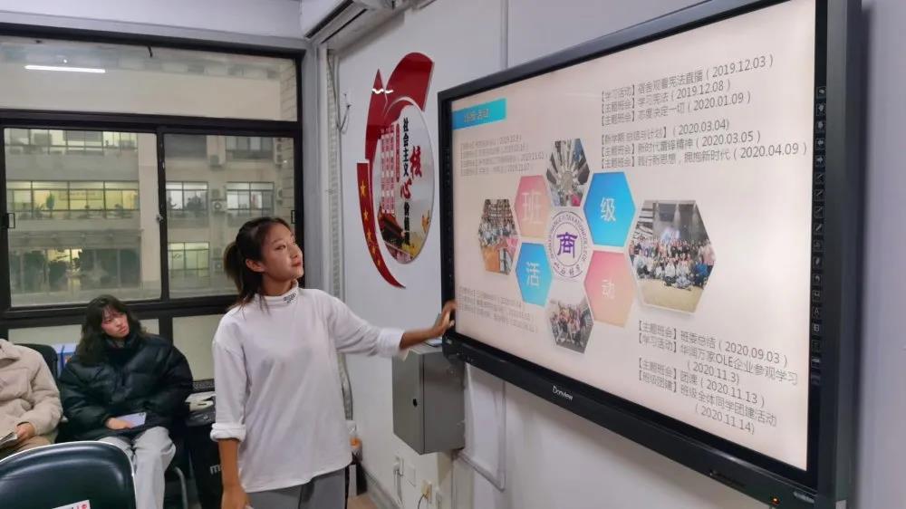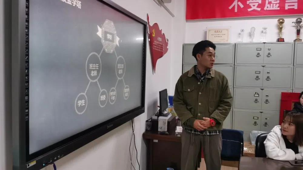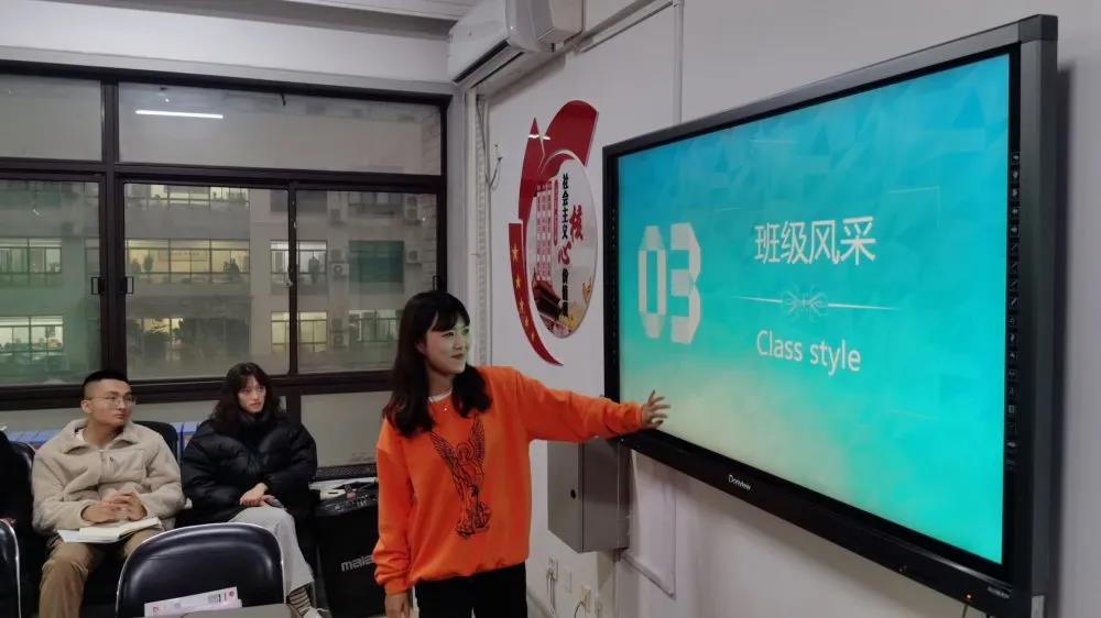 本次先进班集体评选,共有5个班级自愿申请汇报。2019级各班都通过演讲PPT的方式介绍了各个班级的成长历程。2019级连锁经营管理一班李沙阐述了班级计分制度,展现出连锁班独特的班级竞争力;2019级连锁经营管理二班班长程冠霖阐述了用榜样带动班级成员的积极性,展现了连锁二班积极向上的班级形象;2019级市场营销班班长葛舒娜讲述了团结民主的班级形象和优秀的管理制度,展现了卓越的班级风貌;2019级商务英语班王靖然,展现了一个学风浓郁、治理有效的班集体形象;2019级国际商务班文艺委员葛婧雯,用班级体一年来的成就奖项,引出了“以人为本,以班为纲”的班级理念,展现出国商优秀的班级文化。