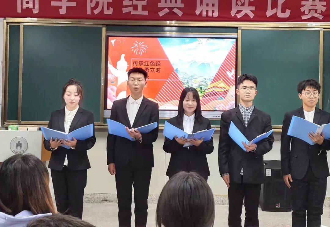 为丰富商院学子的课余生活,创造校园良好的红色氛围,商学院近日在2608教室举办了红色文化“经典诵读”比赛。