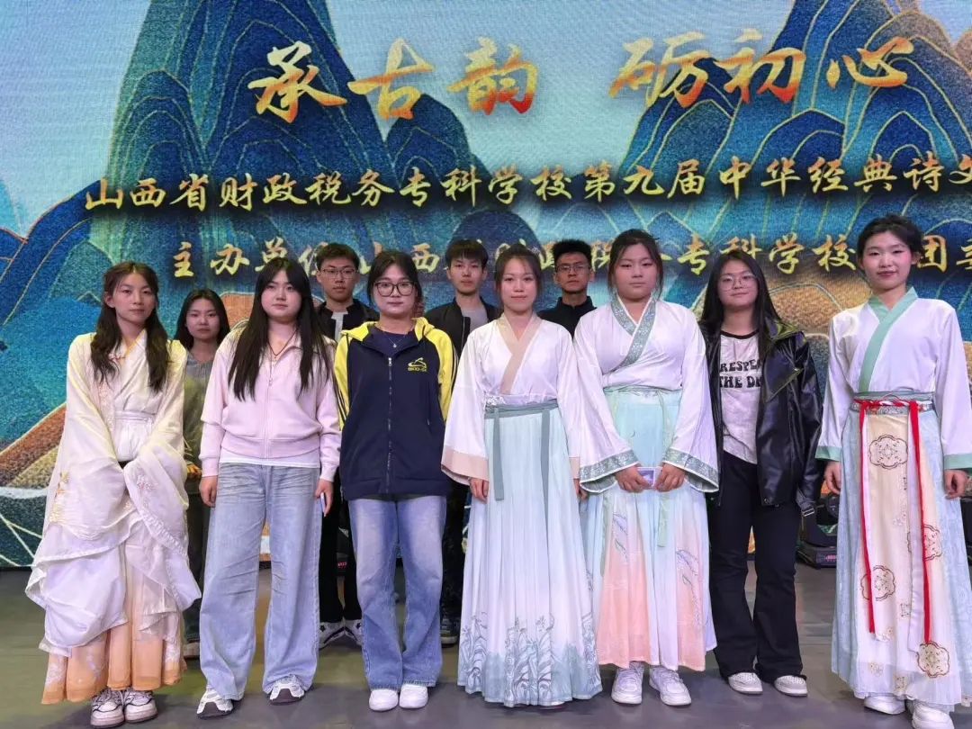 随着铮铮琴音悠悠响起,数字商务学院的学生们仿若穿越时空,引领着全场观众一同步入《诗经》的古老世界。“关关雎鸠,在河之洲。窈窕淑女,君子好逑”,这份质朴天然的美好,是从灵魂深处流淌出的不加雕琢的美,纯粹而动人;“硕鼠硕鼠,无食我黍”,则是历史深处饥民们无奈的悲叹,声声泣血,诉说着生活的苦难。朗诵者们的每一声吟诵,都仿若带着大地的厚重与力量,每一句词都印刻着星河的灿烂与深邃,纯净如同远古澄澈的天空,无邪恰似源头清冽的活水。观众们沉浸其中,真切地感受到《诗经》跨越千年的蓬勃生命力。