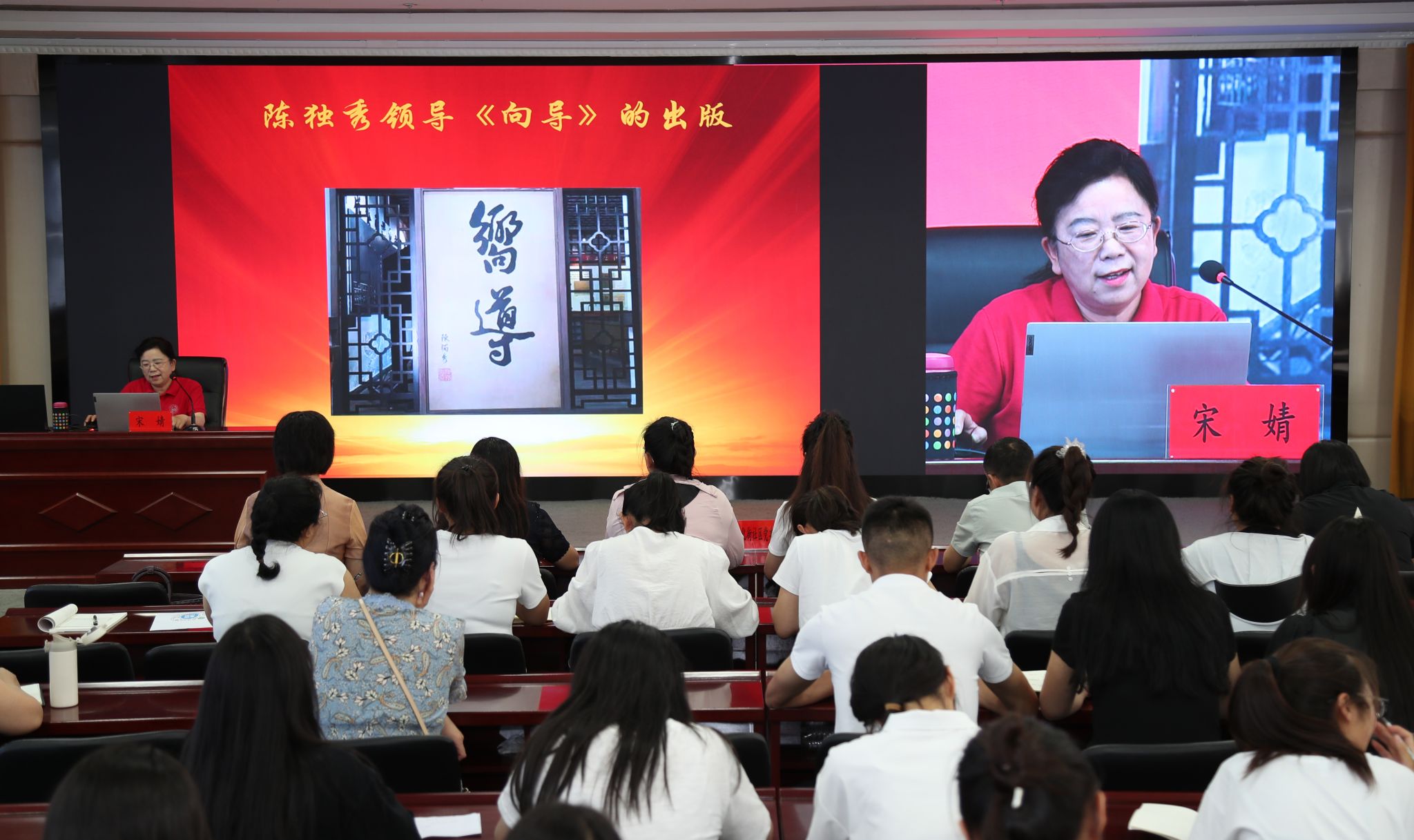 文化讲堂暨主题党日活动邀请太原市教育局教育现代化中心高级讲师、万柏林区政协委员、太原市十佳新闻工作者、山西省博物院志愿者宋婧女士作为“读聚匠心 匠心独具”领读榜样,为大家深入讲解了中共中央公开出版发行的第一份政治机关报刊《向导》周报(The Guide Weekly)和一本特殊的“伪装书”——《论持久战》两件文物红色血脉传承的故事、历史价值及现实意义。她以其在山西省博物院撰写文物解说词、讲解文物的丰富专业知识、实际工作经验及深刻感悟,教育大家要努力从党走过的风云激荡历史中、从党开创和不断推进的伟大事业中、从党全心全意为人民服务的根本宗旨中,深化对党的信赖,引导广大教师、社区居民,尤其是青年学生学党史、感党恩、跟党走,鼓励大家多读书、善读书、读好书,做“三晋未来工匠”读书行动的推动者,努力成长为德技并修的高素质技术技能人才和三晋未来工匠、担当民族复兴大任的时代新人。
