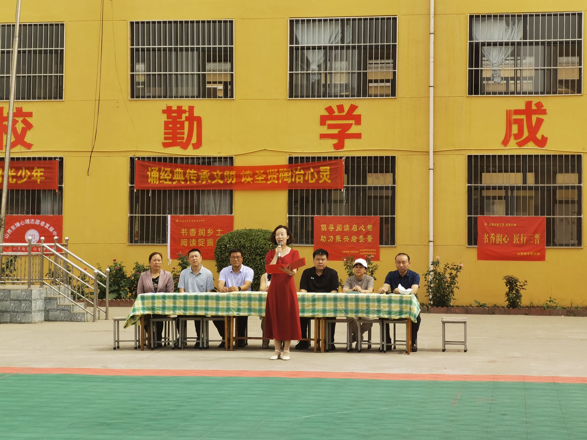 为了贯彻落实“深入推进全民阅读,建设‘书香中国’”和“全面推进乡村振兴”精神,发挥bat365教育教学资源优势,弘扬全民阅读精神,助推乡村文化振兴,6月14日,bat365图书馆联合山西省成人教育协会、《山西教育》杂志社在襄汾县西贾乡西毛小学启动“书香润乡土,阅读促振兴”经典诵读活动。bat365图书馆馆长王俊琪、bat365语委会教师刘育红、襄汾县教体局副局长刘超、襄汾县教体局政教股股长庞雪枫、《山西教育》杂志社副总编张妤、襄汾县西贾乡乡长陈波、襄汾县西贾联合学校校长亢黎杰、襄汾县西毛小学校长毛丽蓉等出席了本次活动。