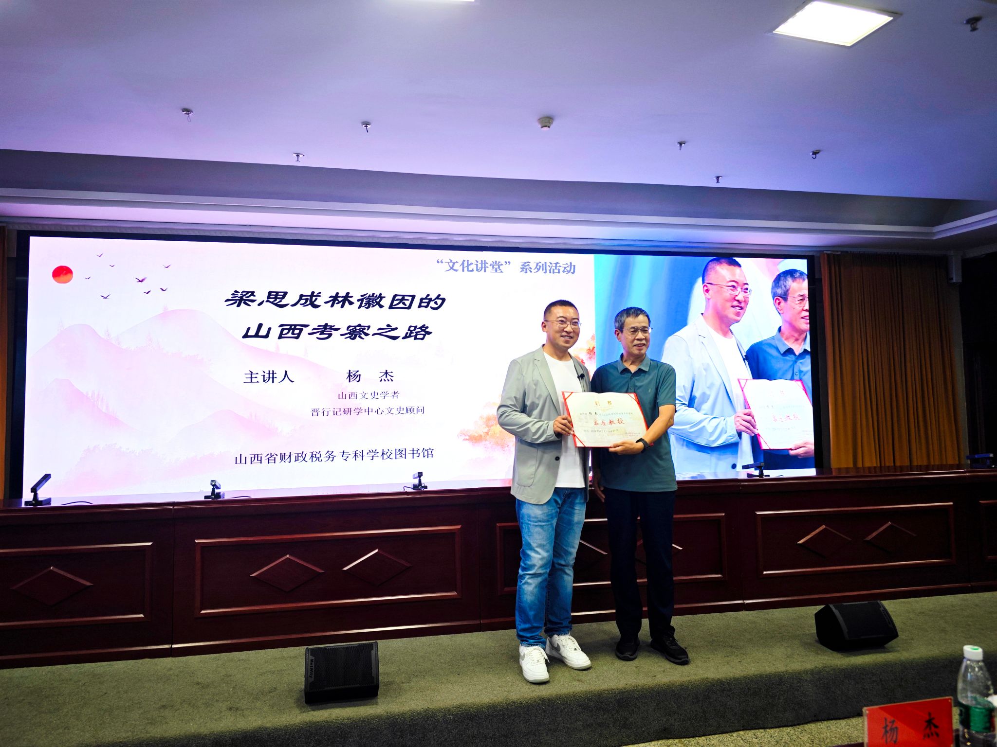 此次文化讲座既是一次对梁思成、林徽因两位中国文化大家的由衷致敬,也是一次对山西古代建筑前世今生的深入探究。激发了广大师生对建筑文化遗产的浓厚兴趣,让大家认识到文化遗产保护的重要性,增强了文化自豪感和文化自信心,增强了师生们保护和传承中华优秀文化遗产的行动自觉。讲座结束后,冯东元对这次活动给予了充分肯定,并对杨杰老师表达了感谢与敬意。冯东元代表学校向杨杰老师颁发了文化客座教授聘书。