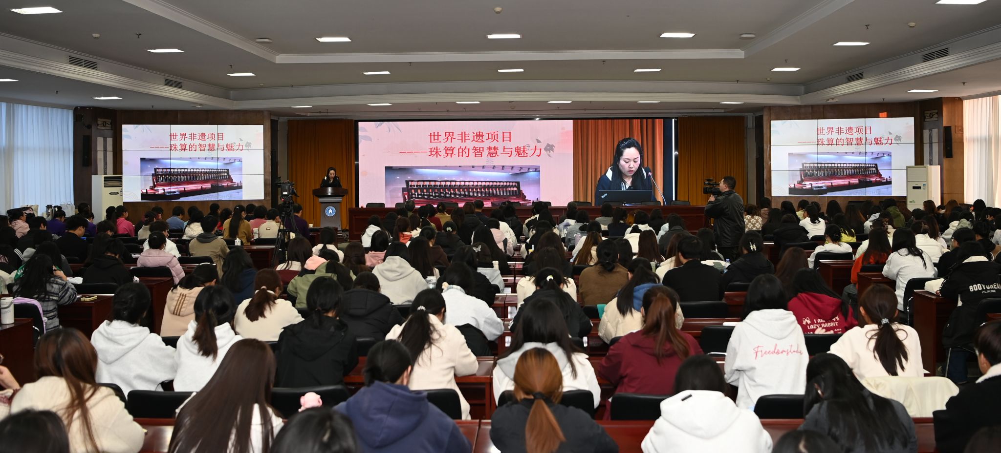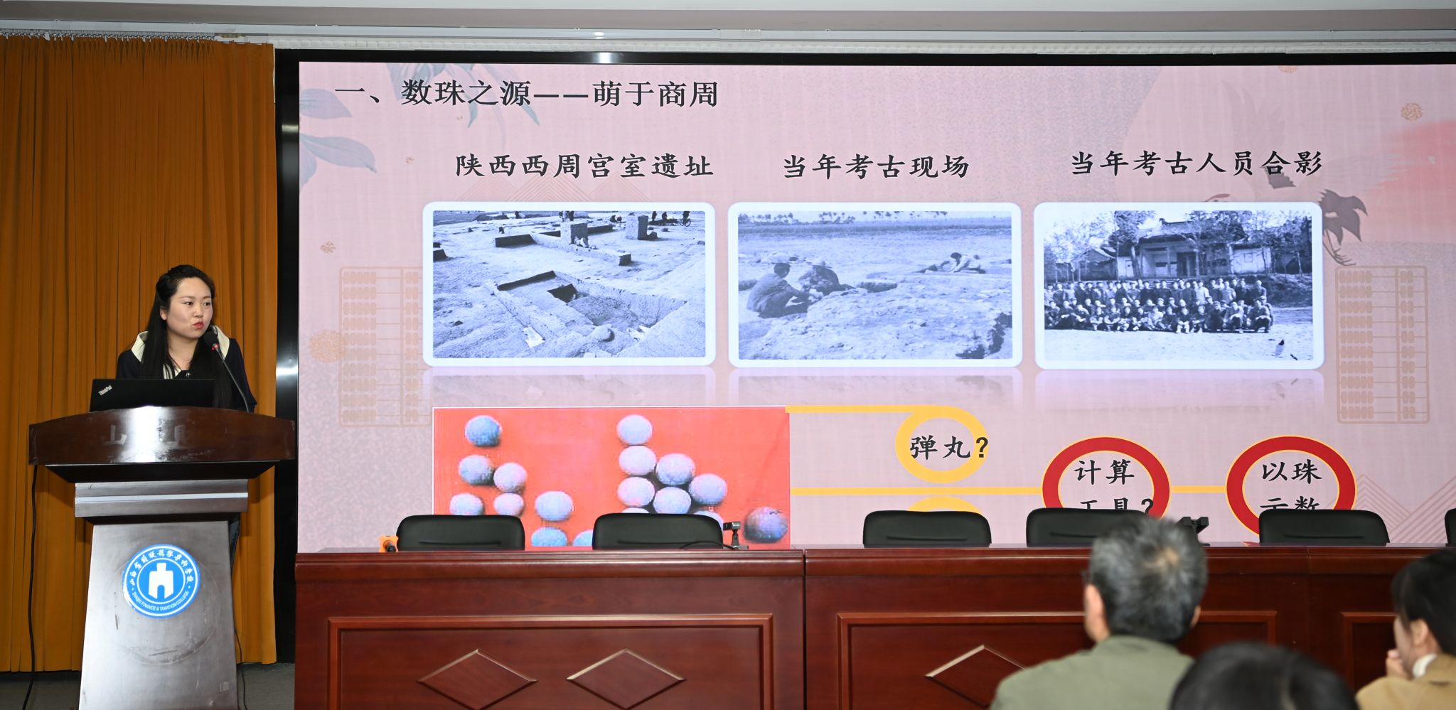 本次活动的主讲嘉宾是山西省珠算心算协会的志愿者苏翠林老师。她以“珠算的历史渊源与发展脉络”为主题,为大家详细解读了珠算历史渊源、发展历程,以及珠算非遗在当代社会的价值和意义,教育引导大家要深刻理解和挖掘珠算非遗的文化内涵和当代价值的重要意义,要增强历史自觉,坚定文化自信,践行好新时代新的文化使命,担当起传承保护发展珠算文化的历史使命,推动珠算心算文化在新时代新征程发扬光大。