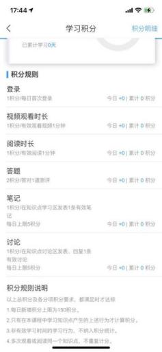 读者可以在移动图书馆APP,通过登录、观看视频、阅读书籍、答题、做笔记、讨论等方式进行自主学习,获得积分(每日新增积分上限为150分,多次观看或阅读的内容不重复计分)。下图为具体的积分规则: