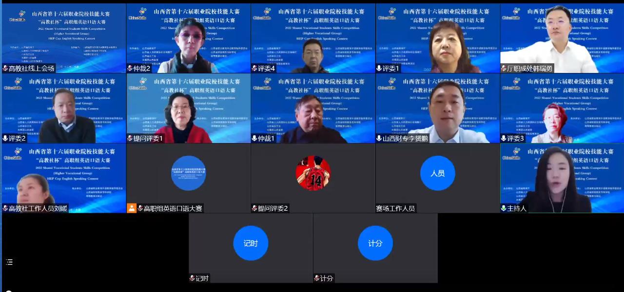 12月2日,由山西省教育厅、山西省人力资源和社会保障厅、山西省总工会、共青团山西省委、山西省中华职业教育社主办,bat365正版唯一官网联合山西省职业教育外语教学指导委员会及高等教育出版社共同承办的第十六届职业院校技能大赛“高教社杯”高职组英语口语大赛通过腾讯会议平台顺利举办。