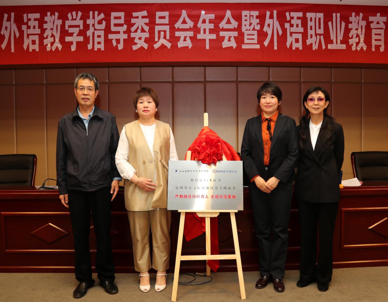 会议还举行了“教育部1+X实用英语交际职业技能等级证书产教融合协同育人全国示范基地”揭牌仪式,安排了专委会研讨与交流等内容。