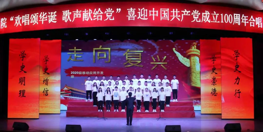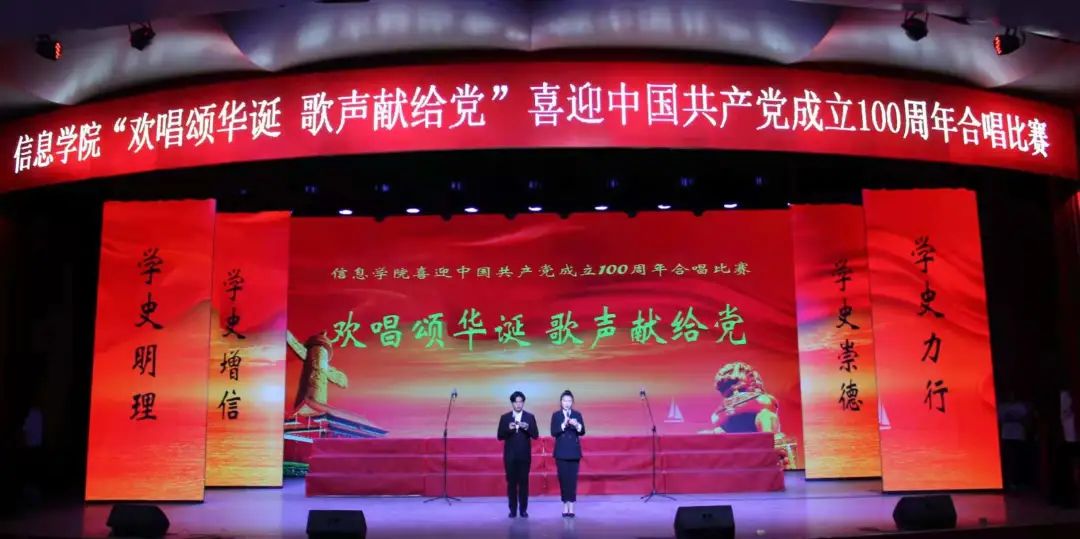 百年征程波澜壮阔,百年初心历久弥坚。为隆重纪念中国共产党成立100周年,激发大学生爱党爱国的高尚情怀,我院于5月27日在大礼堂举行了一场以“欢唱颂华诞 歌唱献给党”为主题的合唱比赛。这不仅是一场音乐盛宴,更是一次党史专题教育。