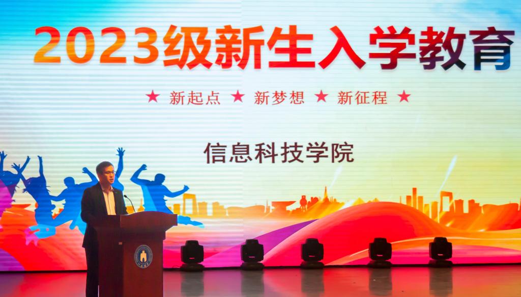 入学教育是新生进入大学的“第一课”,是大学新生的“必修课”。为引导新生全面认识大学、实现角色转换、激发成才动力,信息科技学院于10月20日下午在bat365会堂举办了2023级新生入学教育活动,旨在帮助新生尽快适应大学生活,为新生的成长成才开好头、起好步。信息科技学院党总支书记程瑞萍、院长朱壮华、党总支副书记柳菁、孔德瑾教授、学院辅导员和2023级新生参加了此次入学教育。