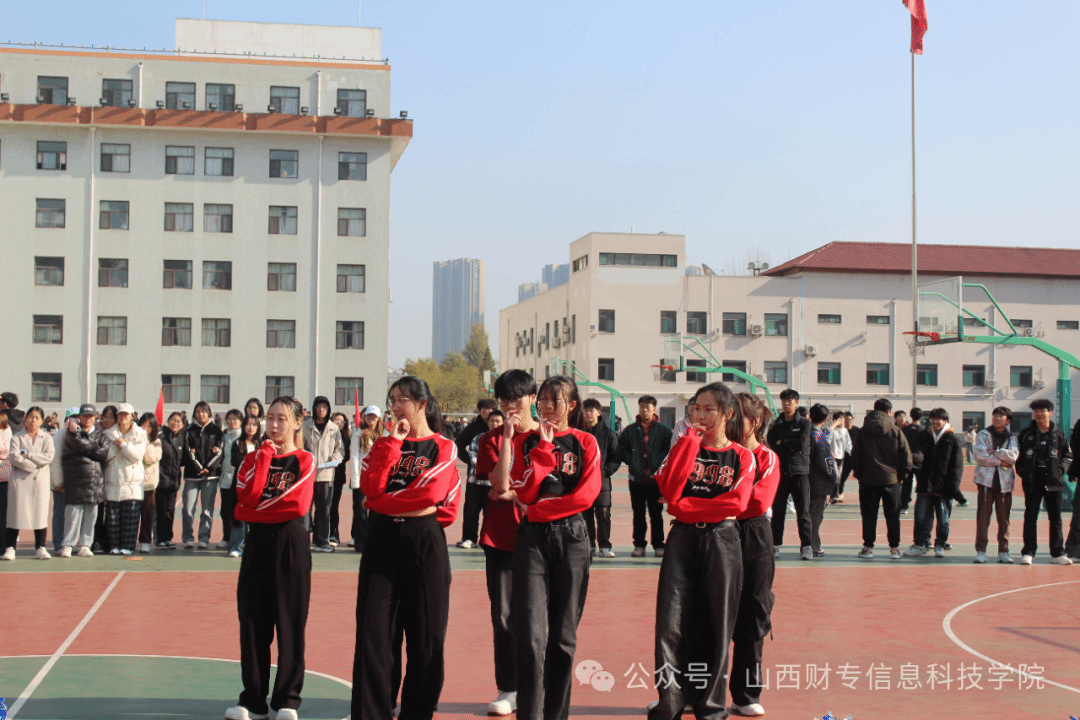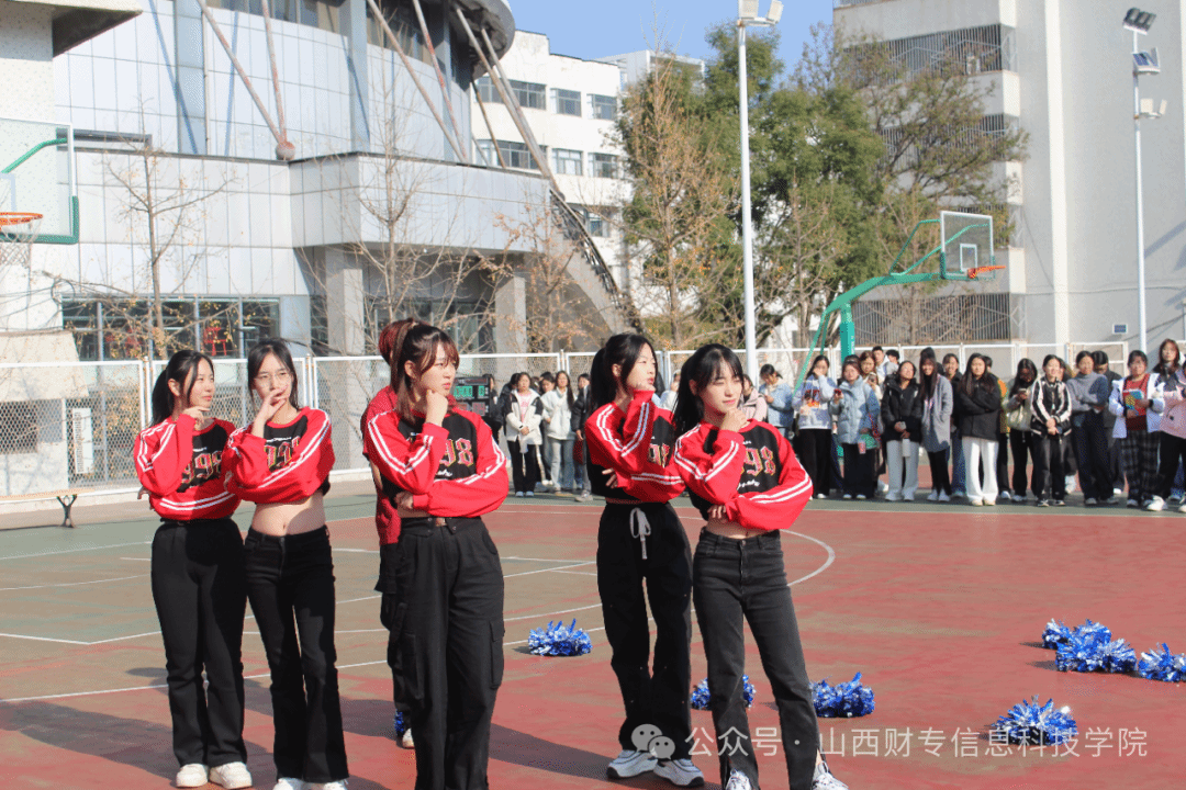 在比赛中场休息期间,还上演了我院文艺部精心编排的啦啦操,为学院的篮球队员加油助威!她们身着华丽舞服,伴随着音乐节奏,翩翩起舞,用轻盈的舞姿,流畅的节奏,洋溢着青春的动感气息。