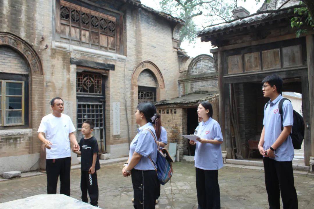 北社乡西社村是八音会传承重镇,曾有五支队伍活跃乡间。老艺人曾代表地区参加省级汇演获二等奖,如今传承人曹高邦带领艺术团创新表演形式,每年演出近三百场,从乡村庙会到上海大舞台,让这一传统技艺在新时代焕发活力。学生们在现场聆听鼓锣笙箫合奏的高亢旋律,感受节庆里的烟火气与文化生命力。随后,团队参观了曹家大院。依山而建的院落里,青砖灰瓦、木雕窗棂、砖雕影壁尽显太行古建特色,老式桌椅、织布机等物件,让学生们想象出往昔生活场景,触摸到传统民居的独特温度。