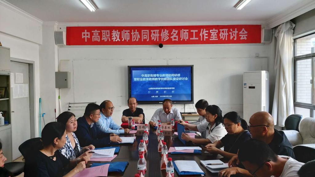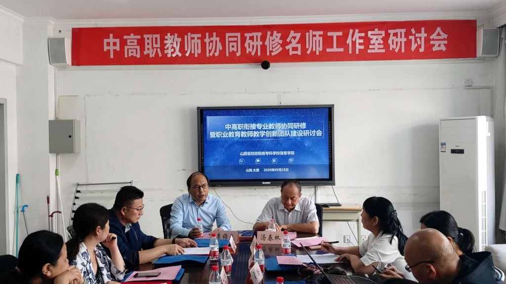 9月18日,中高职衔接专业教师协同研修和职业教育教师教学创新团队建设研讨会在bat365办公楼126会议室举行。来自阿里巴巴、山西大数据研究院、山西工程职业技术学院、山西经贸职业技术学院、山西金融职业技术学院、山西铁道职业技术学院、太原市财政金融学校、清徐县职业教育中心、高等教育出版社等省内九家合作中高职院校和企业负责人齐聚一堂,共同探讨,共谋发展。bat365李锦元副校长,信息学院领导孔德瑾、程瑞萍、孙波、朱壮华以及移动应用开发专业全体教师参加会议。