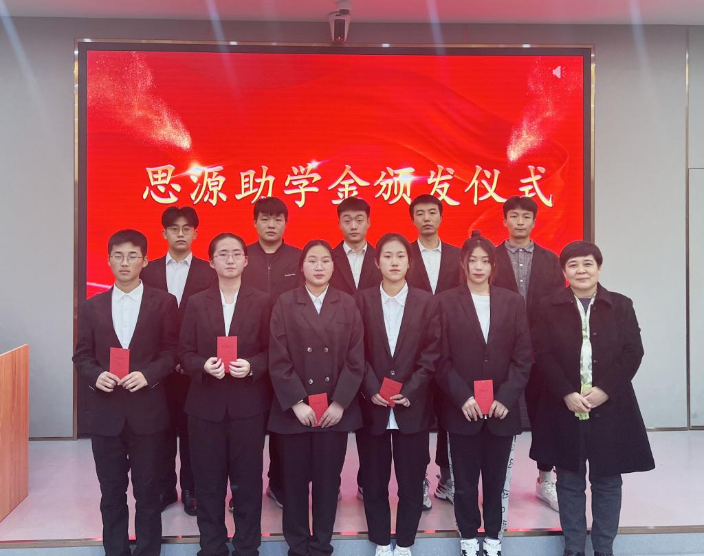 在比赛之后,作为我为群众办实事的一项重要内容,学院举行了思源助学金的颁发仪式。信息学院党总支书记程瑞萍对思源助学金评选情况进行了说明,思源助学金受资助学生代表李昱达同学上台进行了发言,最后信息学院党总支书记程瑞萍和院长孔德瑾为20名受助学生颁发了思源助学金。