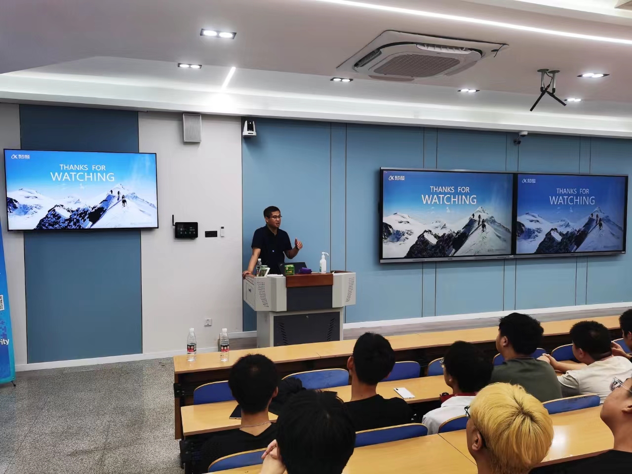 在本次交流会中,田青详细介绍了科大讯飞的企业概况、企业文化、招聘岗位信息、职业发展前景等情况,为学生全面了解企业、作出准确选择提供了帮助。朱壮华在讲话中强调了顶岗实习的重要性,希望应届毕业生勇于承担责任,承担基层工作,把就业看作是展示自己的平台,充分发挥自身才干,让梦想腾飞,为社会作出贡献。