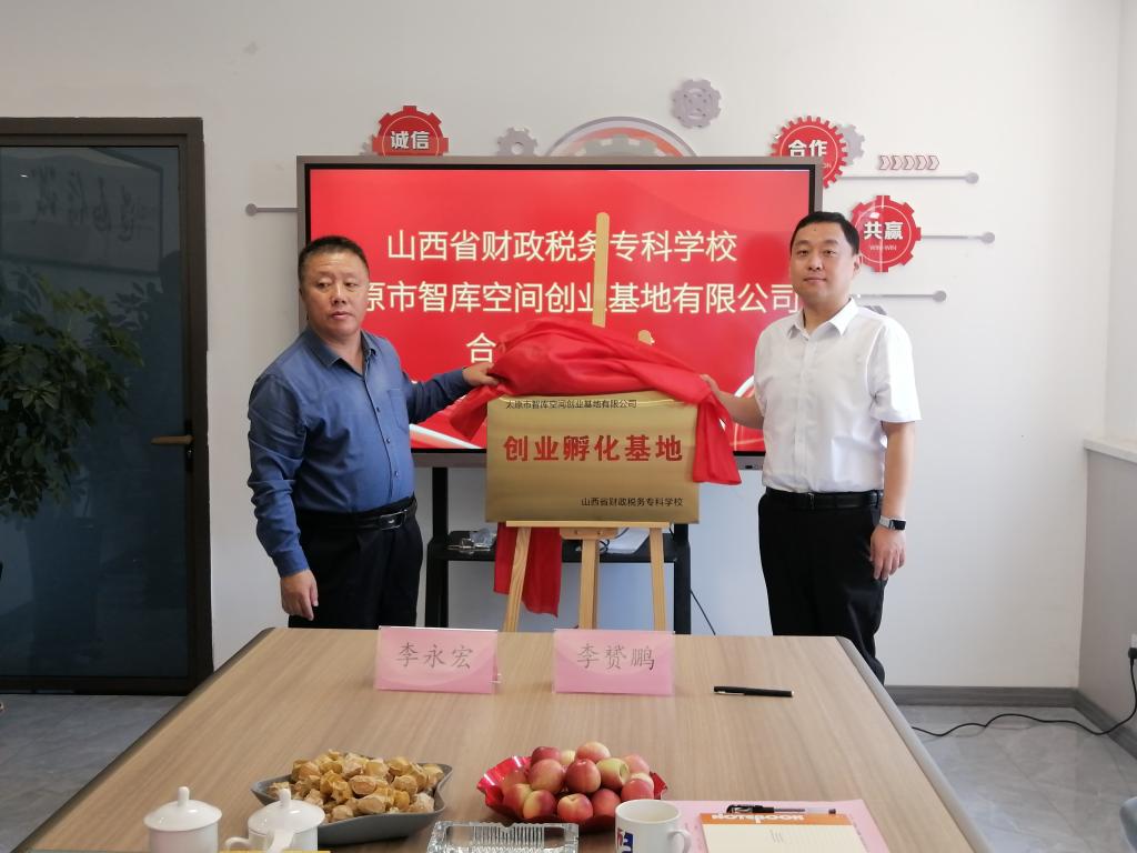 签约仪式上,李赟鹏与李永宏在合作协议上签字,并为“产教融合基地”“创业孵化基地”“创新创业教育导师工作站”揭牌。