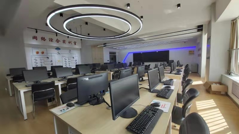 计算机网络综合实训室,以人才培养方案为执行总纲进行设计,拥有交换机50多台,路由器24台,可以满足50人同时实验教学。该实训室集合了信息安全实训平台+基础安全技能课程资源等方式,结合有代表性的实践应用场景,编排了符合学校网络安全人才培养方案要求的实践教学课程。以工学结合的方式,配合教育部1+X等课程置换的教学要求,搭建出了平台系统及典型技术实验,能够完成网络安全基础实训。