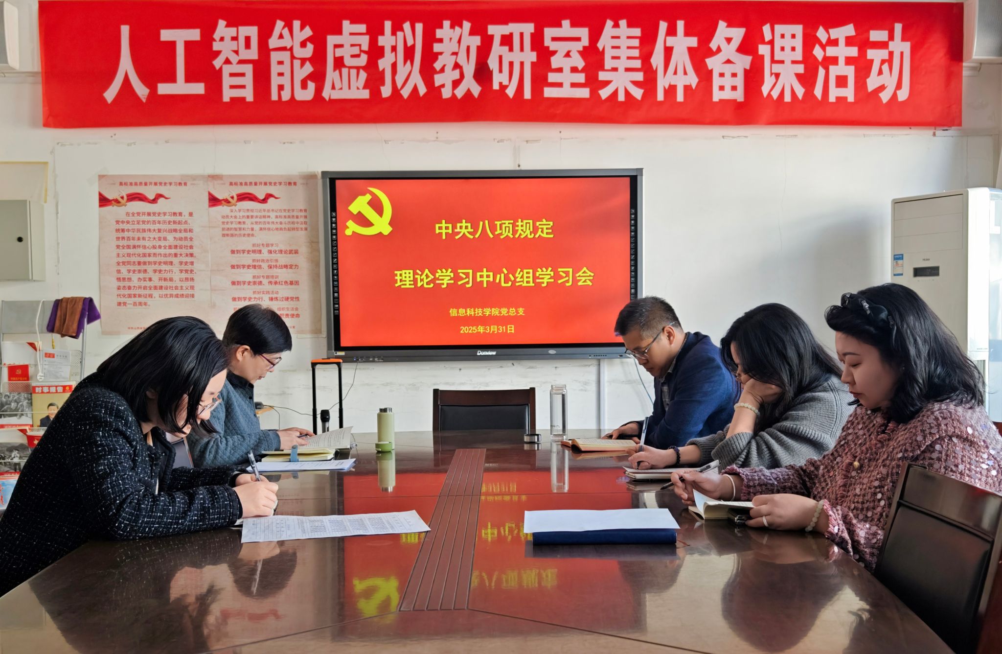 3月31日下午,信息科技学院党总支在124会议室开展理论学习中心组集体学习。深入学习了中央八项规定精神,会议由党总支书记程瑞萍主持,中心组成员参加学习。