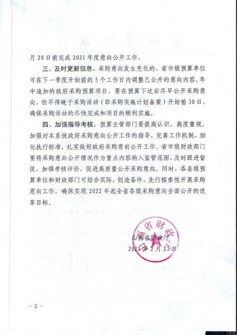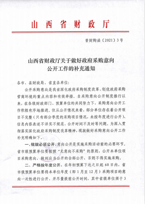 山西省财政厅关于做好政府采购意向公开工作的补充通知