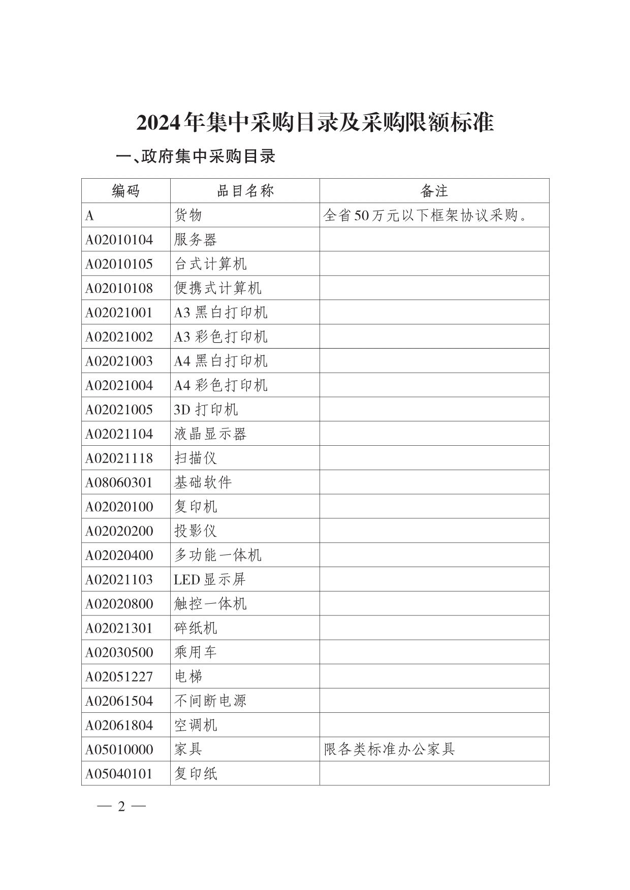 2024年集中采购目录及采购限额标准