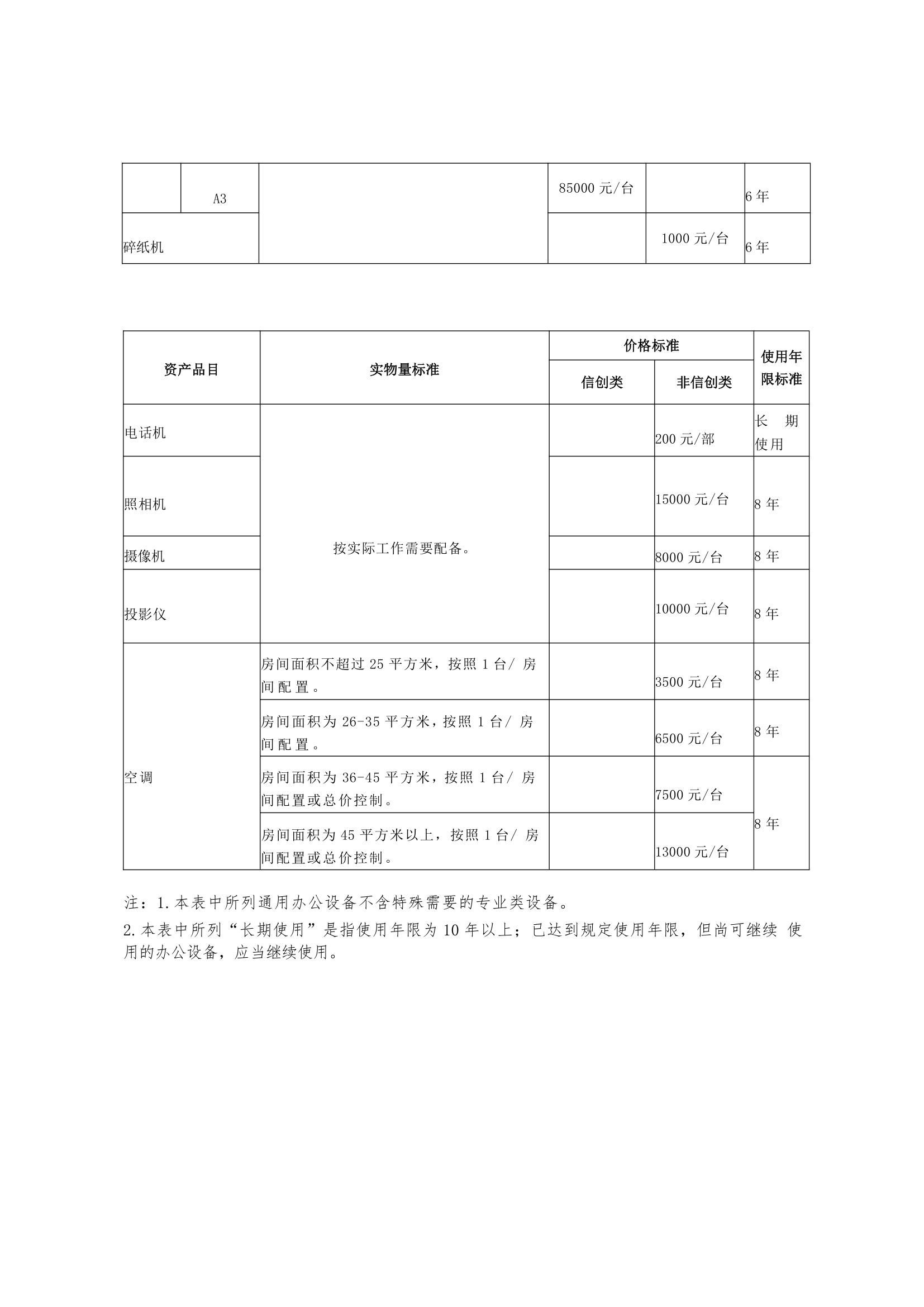 bat365正版唯一官网办公用房及通用办公设备、家具配置标准