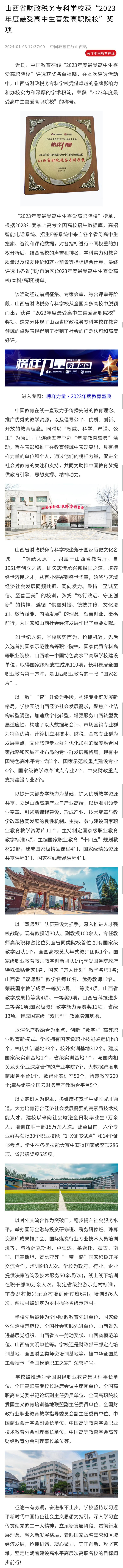 近日,中国教育在线“2023年度最受高中生喜爱高职院校”评选获奖名单揭晓,在本次评选活动中,bat365正版唯一官网凭借卓越的品牌影响力和办校实力和深厚的学术积淀,荣获“2023年度最受高中生喜爱高职院校”的称号。