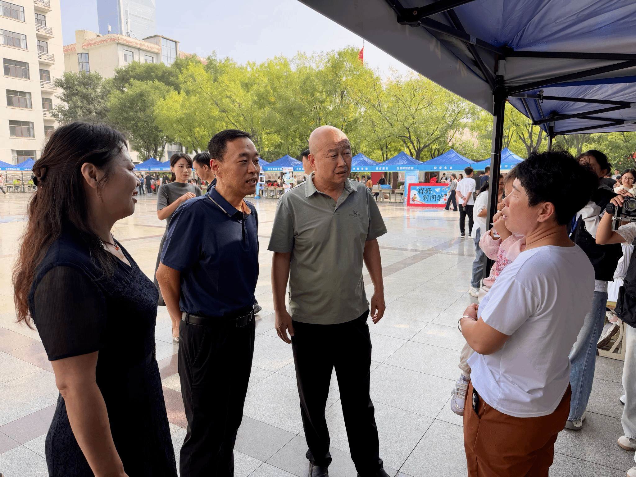 校长李赟鹏来到迎新现场,深入各报到点、宿舍和食堂,看望慰问工作人员和志愿者,对他们的辛勤付出表示感谢。“从哪里来?”“对学校印象如何?”“有什么困难需要解决?”李赟鹏与新生及家长亲切交谈,询问行程感受,倾听意见建议,并勉励新生珍惜时光、积极融入、学有所成。亲切的关怀与诚挚的问候,拉近了彼此的距离,也让家长们倍感安心。一位家长动情地说:“孩子在财专读书,我们放心。相信在学校精心培养下,一定能够成长成才 ”。