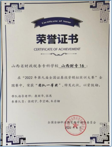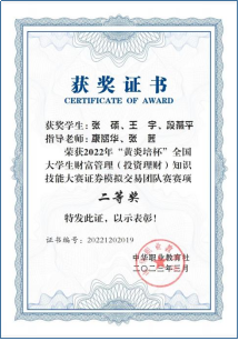 (5)2022年指导学生参加“黄炎培杯”全国大学生财富管理知识技能大赛证券模拟交易团队赛获“团体二等奖”。